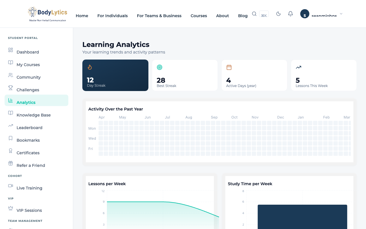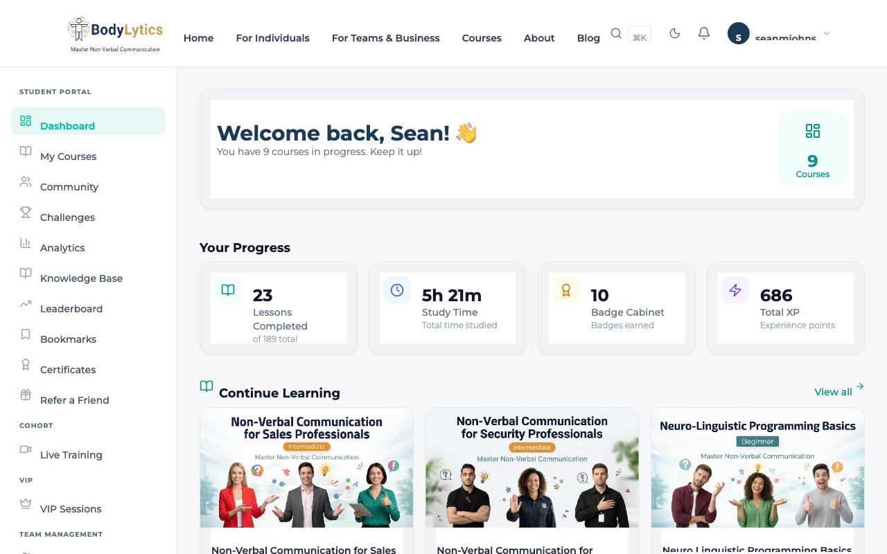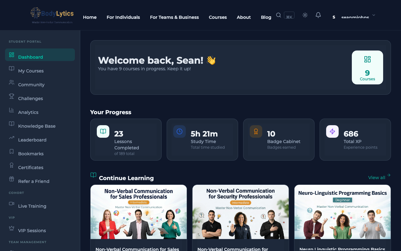 Welcome to BodyLytics Academy — a premium learning platform designed to help you master the art and science of non-verbal communication. Whether you're here to improve your professional presence, understand micro-expressions, or develop advanced NLP techniques, this platform has been built from the ground up to make your learning experience engaging, interactive, and effective.